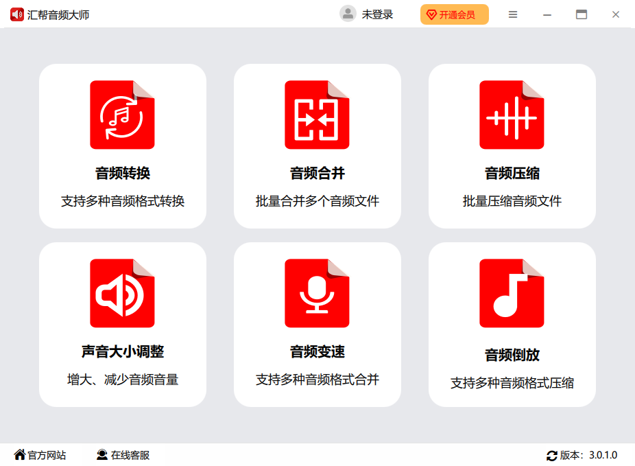 汇帮音频大师是一款多功能的音乐音频转换软件,集合了音频格式转换、音频合并、音频压缩、音频调整、音频变速、音频倒放
