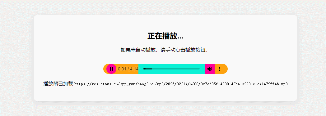 <p>播放器已加载 <code>https://res.ctmus.cn/app_yunshang3.v1/mp3/2026/02/14/6/88/8c7ed85f-4080-43ba-a220-e1c41479ff4b.mp3</code></p>